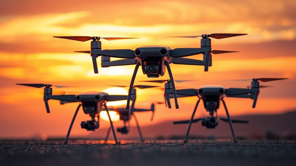 If you’re looking to elevate your aerial shots in 2026, consider the STARTRC Mini 3 Pro Landing Gear Training Kit for added ground clearance and protection. The Water Landing Gear for DJI MINI 3/4 Pro allows for safe water landings, while the Water Floating Landing Gear for Mini 2 enhances versatility. Don’t forget about the portability and quick setup features that make switching environments hassle-free. You’ll want to discover even more options for maximizing your drone’s potential.