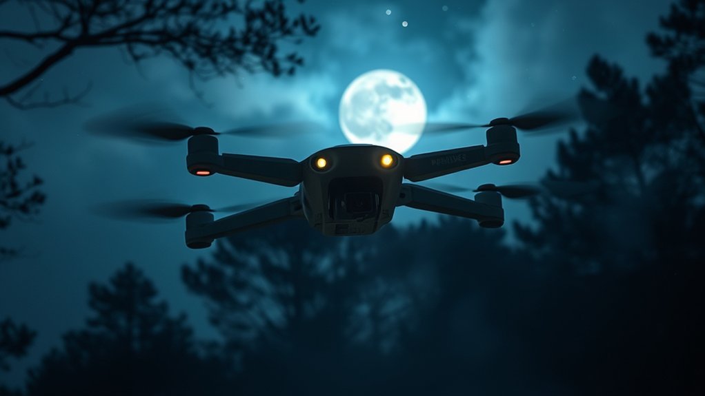 When maneuvering the challenges of night flying, having a drone equipped with effective obstacle avoidance technology can greatly enhance your safety and confidence. This technology allows your drone to automatically detect and navigate around barriers, considerably reducing crash risks. Many models use a combination of sensors, including ultrasonic, infrared, and visual cameras, to create a thorough 360° view of the environment. With some systems capable of detecting obstacles as small as 0.5 inches, you gain precision in your flight paths. Keep in mind that the effectiveness of this technology can vary with environmental conditions. Some systems are specifically optimized for low-light scenarios, making them particularly valuable for night vision flights, ensuring a smoother, safer flying experience.