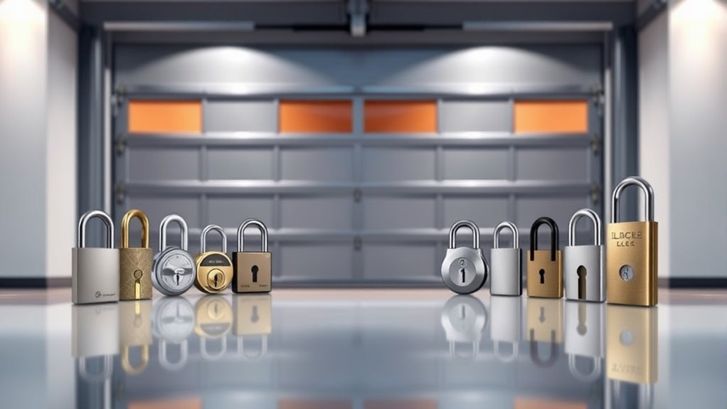 When it comes to garage door locks, you’ll discover a range of types designed to suit different security needs and preferences. Slide latches offer an extra layer of security by keeping the door firmly in place, while T-handle locks allow for easy operation and secure closure. If you’re looking for something standardized, rim cylinder locks are convenient and easy to replace, often available in keyed alike options. For superior security, consider deadbolts, which engage in vertical tracks and typically require operation from inside, effectively preventing unauthorized entry. As you choose, think about the locking mechanism that best fits your security needs, and don’t forget to assess compatibility with your garage door’s thickness and material.