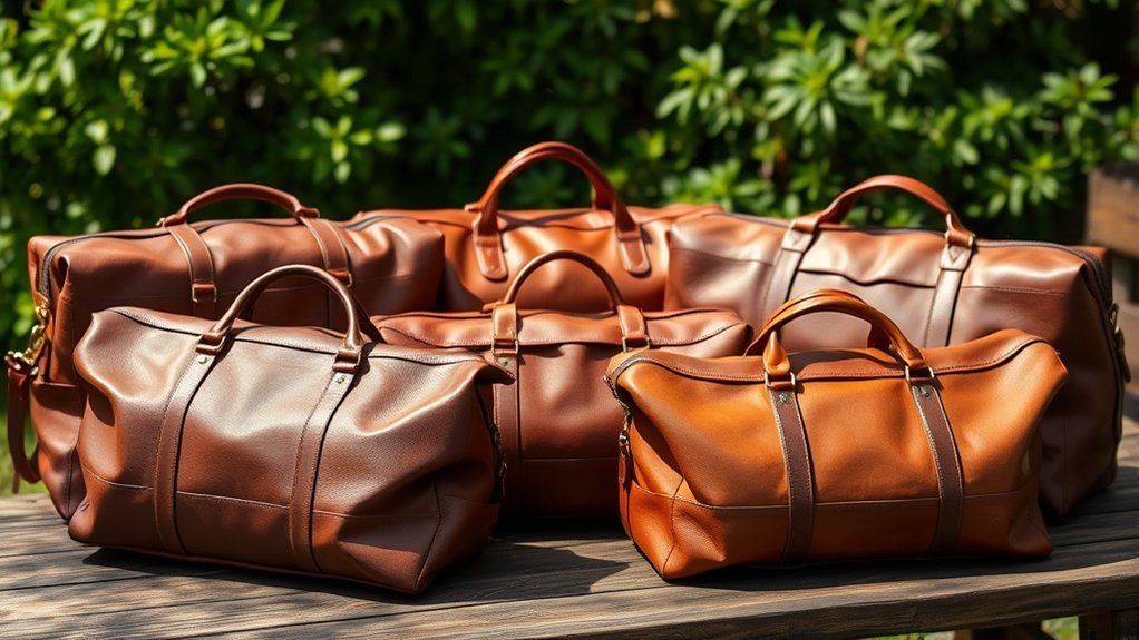 Durability is a key factor in selecting the right leather duffel bag, as it determines how well your investment will withstand the rigors of travel and daily use. Look for bags crafted from full grain leather, known for its resilience against wear and tear. Check for YKK metal zippers; these are renowned for their strength and smooth operation, ensuring longevity. Additionally, consider options with protective elements like metal studs on the base, which help prevent damage when placed on various surfaces. A water-resistant lining can also enhance durability by protecting the interior contents from moisture. Finally, handcrafted designs often indicate superior craftsmanship, contributing to the bag’s overall longevity and reliability. Choose wisely, and your duffel bag will serve you well.