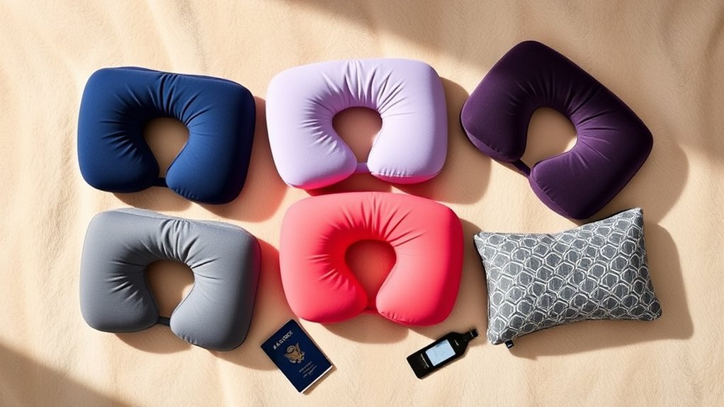 When you’re on the go, a packable travel neck pillow is essential for comfort. Consider the Dot&Dot Twist Memory Foam Travel Pillow for customizable support. The MLVOC 100% Memory Foam Travel Pillow Kit provides a snug, contoured fit. DreamShore’s Stuffable Travel Pillow is great for compactness, while the Cabeau Travel Neck Pillow offers 360° support. Finally, the SAIREIDER 100% Pure Memory Foam Pillow gives you adjustable sizes. Stick around to discover more details on each option!