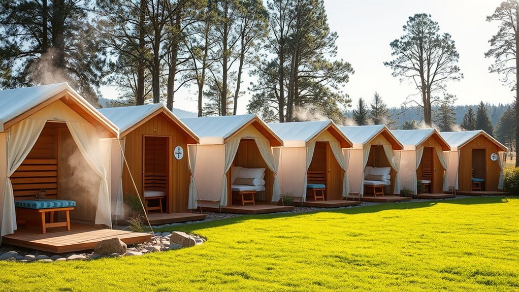 If you’re looking for the best sauna tents, here are seven great options to contemplate. The Portable 2 Person Steam Sauna Tent is perfect for sharing relaxation. Manastin offers a compact model with a remote control for easy adjustments. The upgraded sauna box guarantees a cozy experience, while Lifepro’s outdoor option accommodates up to four. Each tent focuses on comfort, safety, and portability. Keep going to discover what features you should evaluate when choosing the perfect sauna tent for you.