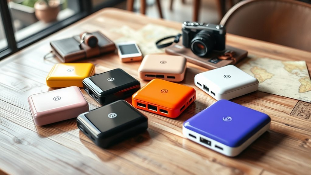While battery life might not be the first factor you think of, it plays a vital role in selecting a travel router under $50. Look for options with battery capacities between 2100mAh and 3000mAh to guarantee adequate usage times. A router with a standby time of up to 72 hours can be a game changer during long trips, reducing the need for constant recharging. Remember, larger battery capacities generally mean longer usage, fundamental for maintaining connectivity on the go. Additionally, routers that can charge via USB offer flexibility, letting you power them using portable chargers or laptop USB ports. Finally, consider how battery life may vary based on the number of devices connected, as more connections can drain power faster.
