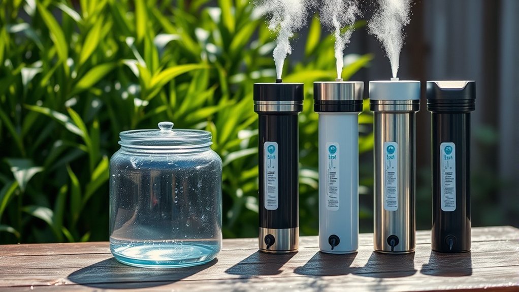 Choosing the right water filter for collected rainwater is essential, as filtration efficiency directly impacts water quality. A filter’s ability to remove contaminants like sediment, dirt, and organic matter is important. Look for a filter with a micron rating of 5 microns or less to effectively capture sand, rust, and other particulate matter. The type of filter you choose—be it sediment, carbon, or multi-stage—will also influence its efficiency against specific contaminants. Remember, regular maintenance and timely filter replacement are crucial to keep your system running smoothly and prevent clogging. Finally, always opt for filters certified to relevant standards to guarantee they effectively reduce contaminants and provide safe drinking water for you and your family.