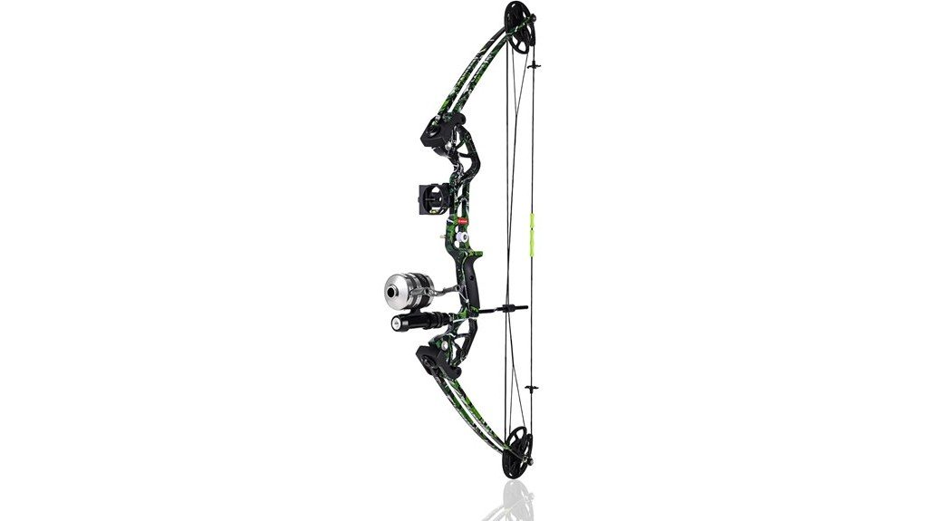 The bow offers adjustable features, allowing for customization of draw weight ranging from 15 to 45 pounds and draw lengths between 18 and 29.5 inches. Its right-hand configuration guarantees comfort and usability for right-handed shooters.