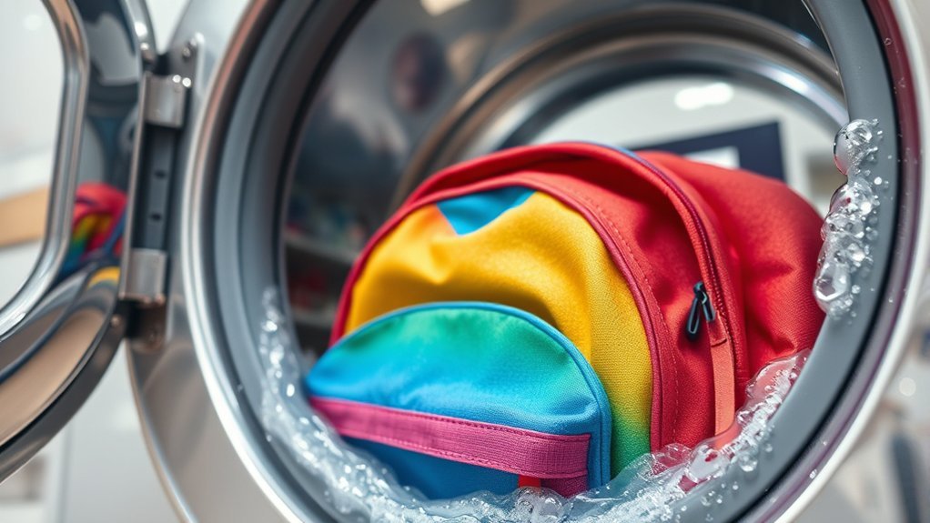 Absolutely, you can machine wash a backpack! Just make sure it’s empty and remove any debris first. Pre-treat any tough stains and place it in a pillowcase or laundry bag for protection. Use cold water and a gentle cycle with a tablespoon of detergent. After washing, let it dry upside down with all pockets open. If you want your backpack to last, it’s essential to follow some care tips. Stick around to learn more!