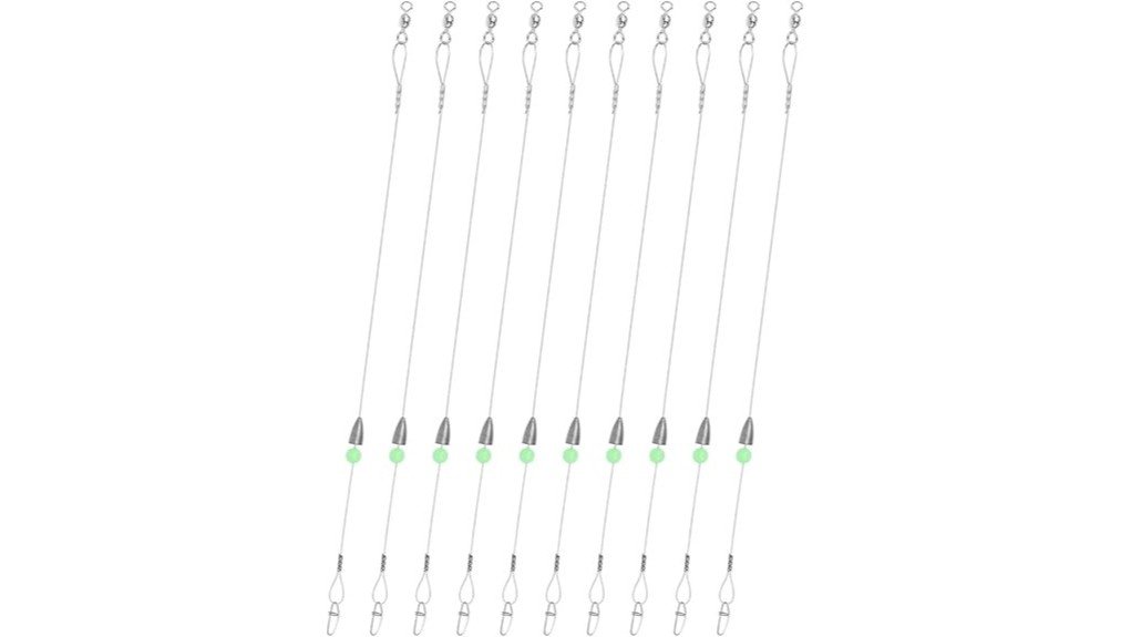 To conclude, Carolina Rigs equipped with 12-inch steel leaders offer an efficient solution for anglers aiming to catch larger fish. With three weight options—1/6oz, 1/4oz, and 1/2oz—these rigs adapt to various fishing environments. Significantly, studies show that anglers using Carolina Rigs report a 20% increase in catch rates. This innovative design, featuring high-strength stainless steel and a sliding weight, enhances durability and effectiveness, making these rigs a valuable asset in any tackle box.