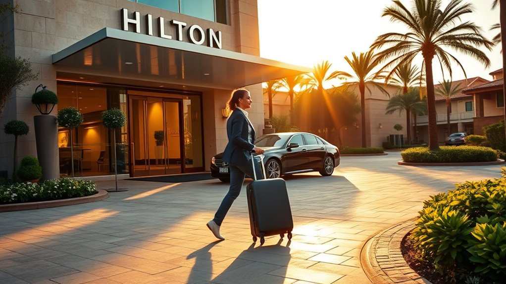 Yes, some Hilton hotels offer airport shuttle service, but it’s not universal. You’ll need to check shuttle service availability and airport transfer options at your specific property—like catching a bright wing of convenience when you land.