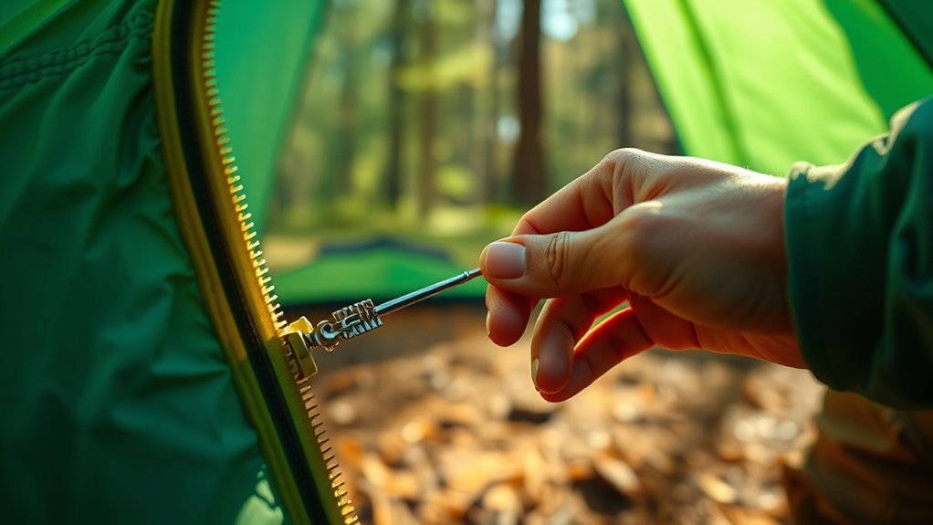 Just like a sturdy bridge connects two shores, a well-functioning zipper unites your tent’s halves, keeping you safe and dry. By regularly maintaining and quickly addressing any issues, you guarantee your camping adventures remain seamless. Remember, a little care goes a long way—just as a gardener nurtures plants to thrive, you can nurture your tent’s zipper for longevity. With these simple repairs, you’re ready to face whatever nature throws your way, keeping your home away from home intact.