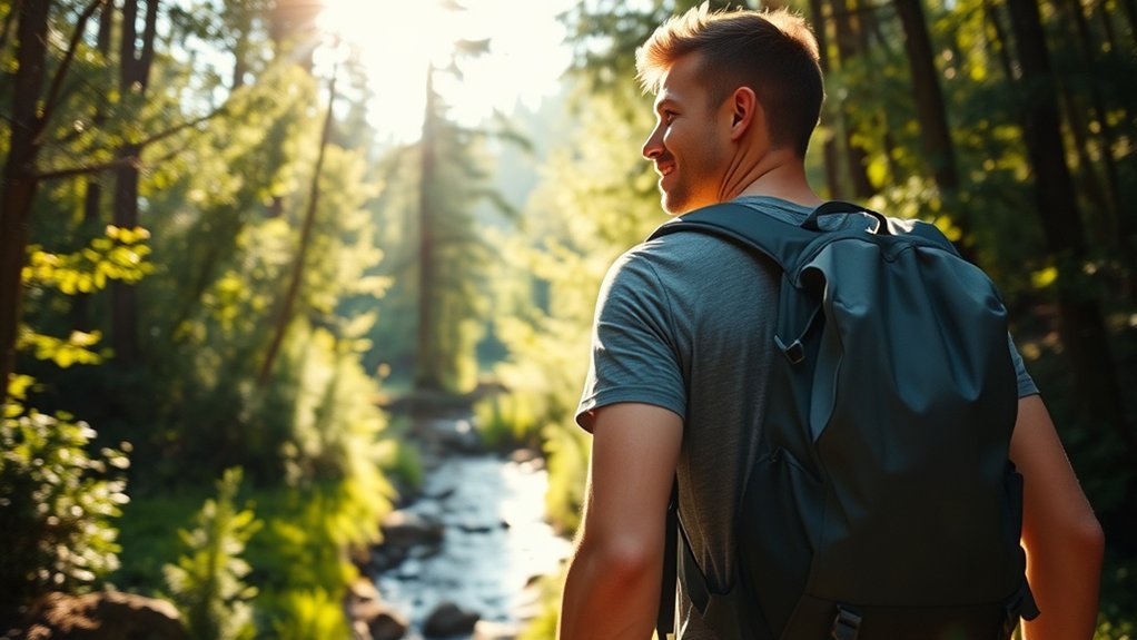Additionally, adjustable straps can minimize contact with your back, further improving airflow. Look for removable, washable padding for easy maintenance, ensuring hygiene and odor control. By selecting the right backpack with these features, you’ll liberate yourself from the discomfort of a sweaty back, allowing you to enjoy your adventures with confidence.