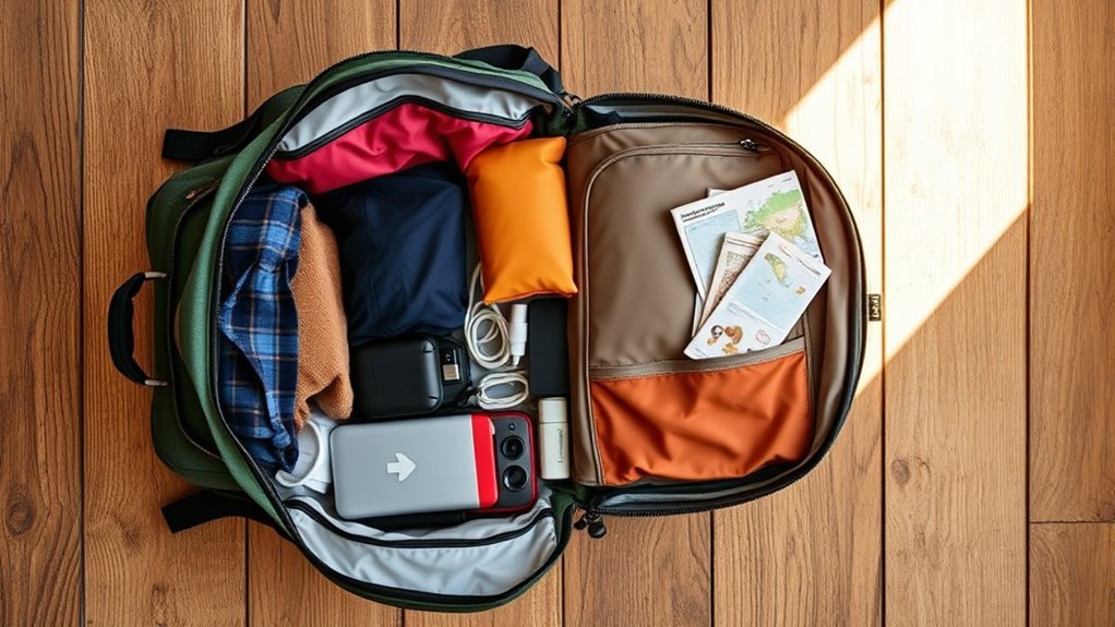 Lastly, consider packing a small, empty water bottle to stay hydrated and reduce reliance on single-use plastics during your adventures. With these steps, you’ll maintain a sense of freedom and ease, allowing you to focus on the experiences ahead rather than the hassle of disorganization.
