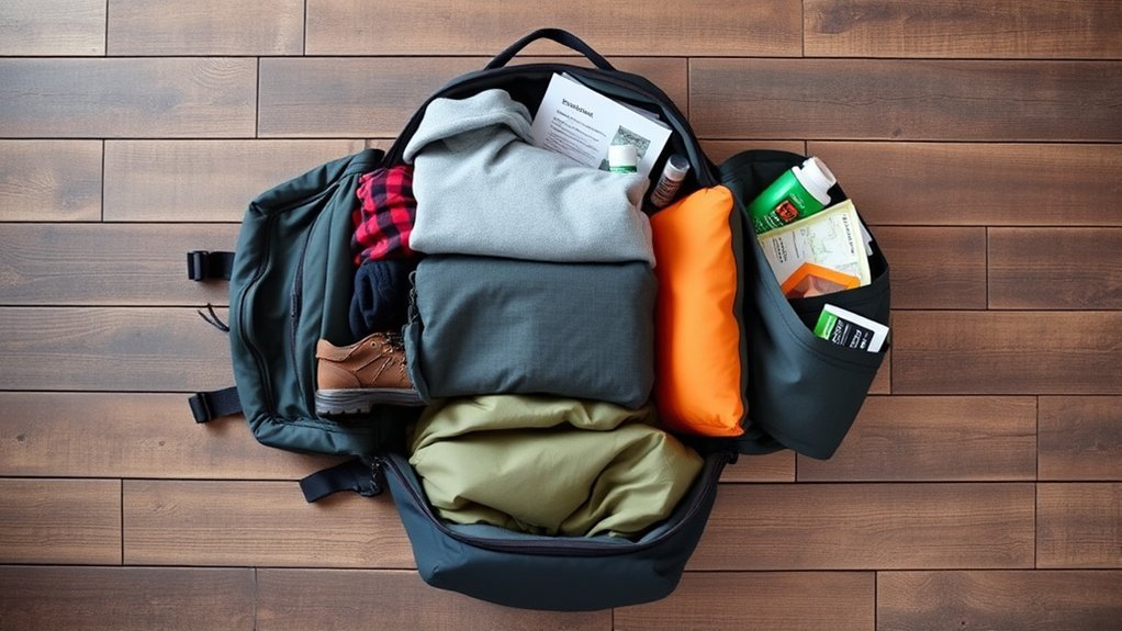 To pack your backpack for a weekend trip, start by checking the weather and planning versatile clothing that adapts from day to night. Use packing cubes to keep items organized and maximize space. Prioritize comfort with breathable fabrics and pack essential toiletries in travel-sized containers. Don’t forget a reusable water bottle and a compact makeup bag. Choose comfortable footwear for exploring, and you’ll be all set. Stick around to discover more tips for a smooth travel experience!