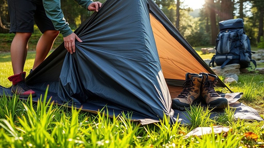 Yes, it’s safe to fold a wet tent if you use proper packing techniques. Just make certain you dry it as soon as possible for ideal tent maintenance, preventing mold and extending your gear’s lifespan.