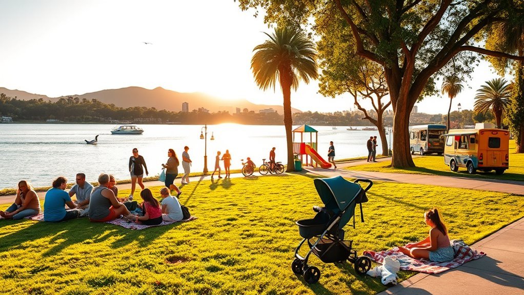 Start by picking a date and venue that match your family’s needs—choose kid-friendly sites like Lake Temescal or Joaquin Miller Park for outdoor gatherings, or the Oakland Museum of California for a cultural option with indoor space and free admission for kids 12 and under. Next, check community calendars for seasonal draws—Temescal Street Fair in June, farmers markets, and live music that bring energy and activities for kids. Prioritize safety: pick places with restrooms, shade, clear sightlines, and easy egress. Plan simple activities, snacks, and a first-aid kit, and assign adult roles so everyone knows who watches whom. Keep plans flexible so your family can enjoy Oakland’s vibrant, liberating summer scene without stress.