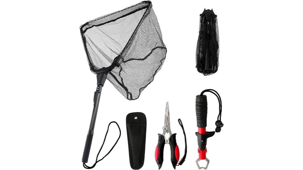 The 3Pcs Fishing Tool Kit offers anglers a practical solution for efficient fish handling. This set includes a folding fishing landing net, a fish lip gripper, and 7-inch multifunctional pliers, all made from durable materials suitable for both freshwater and saltwater fishing. The compact design guarantees easy transport and storage, making it ideal for various fishing adventures. With ergonomic grips and quick-release mechanisms, this kit enhances user experience. Discover more about its features and benefits for all types of anglers.