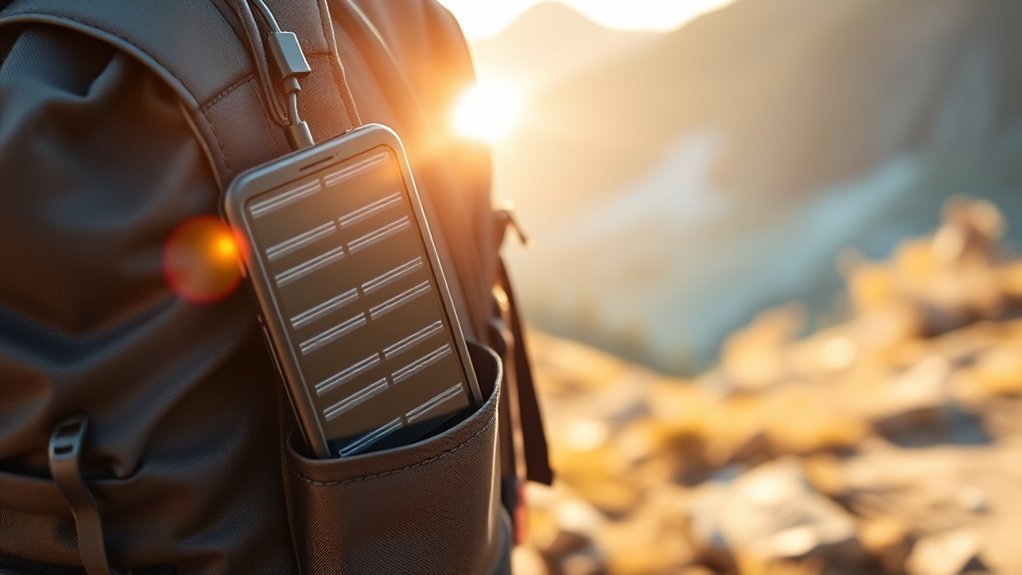 For backpacking, the best solar charger type depends on how you balance output, weight, and setup flexibility. If you’re powering a lantern or another single device, a small on-device charger can work, but panel-only chargers usually give you more freedom because you can pair them with a separate power bank. That setup lets you store energy and manage loads on your terms. Choose larger panels when you need higher output; they capture more light and charge faster, which boosts solar charger efficiency on the trail. If packing space matters most, pick a lightweight foldable model. If durability drives your choice, rigid panels usually resist abuse better, while semi-flexible and flexible panels make it easier to reach ideal sunlight exposure on uneven terrain. You should also check weatherproof ratings like IP65, since reliable protection keeps your system functional through harsh conditions and preserves your independence outdoors.