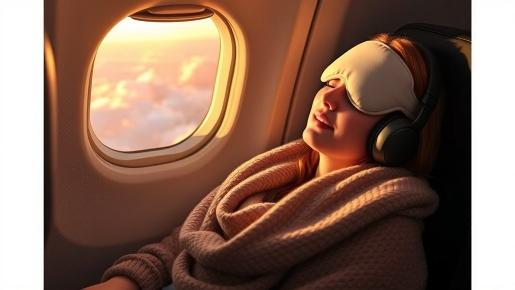 To sleep on planes without neck pain, it’s essential to use a quality travel pillow that supports your neck’s natural curve. Adjust your seat for ideal angle, practice chin tucks, and perform gentle stretches every few hours to boost circulation. Stay hydrated and block out noise with earplugs or headphones. Position your head comfortably and avoid looking down at devices. Keep these tips in mind to enhance your comfort and satisfaction during your journey. There’s more to uncover!