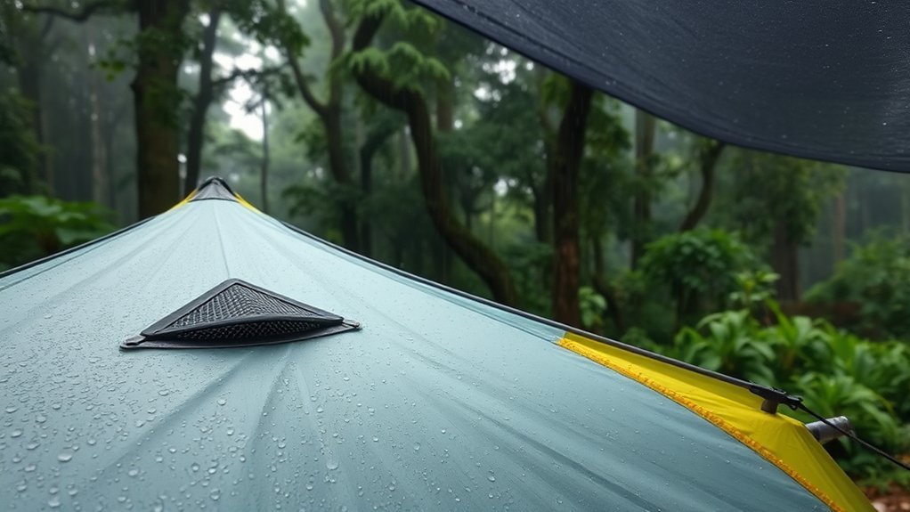 Moreover, camping under trees improves airflow around your tent, enhancing ventilation and further decreasing the risk of condensation buildup. Just be sure to select sturdy trees free of widow-makers, as safety should always be a priority during your outdoor adventures. By leveraging the natural advantages of tree shade, you can enjoy a more comfortable and condensation-free camping experience.