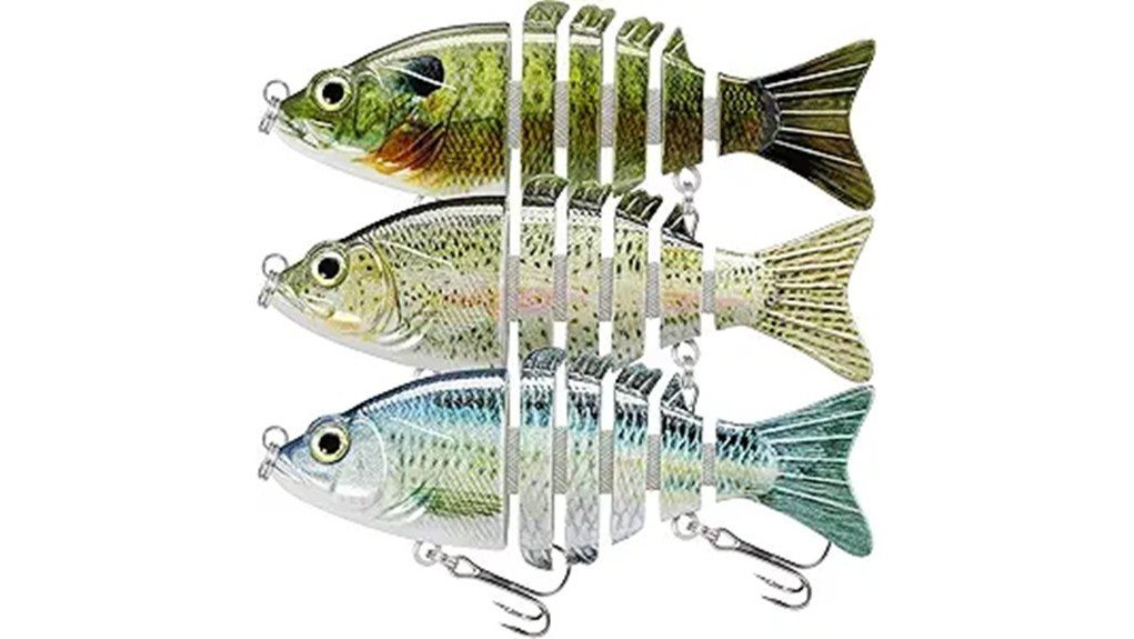 The TRUSCEND Easy Catch Swimmax is a highly effective fishing lure featuring a six-segment, multi-jointed design that mimics realistic swimming motions. This lure includes 3D eyes, a pearl powder coating for light reflection, and built-in rattles to attract various fish species such as bass, pike, and trout. Crafted from durable ABS material, it boasts ultra-sharp treble hooks ensuring excellent performance. Ideal for both freshwater and saltwater fishing, this versatile tool enhances catch rates. Discover more essential details on its benefits.