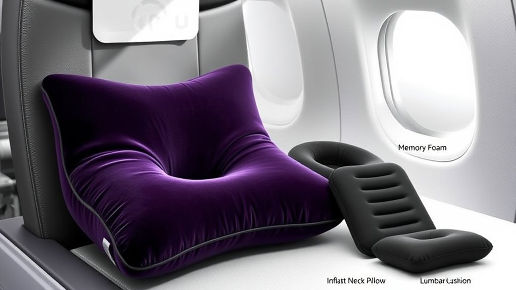 When you’re on the go, finding the right travel seat cushion pillow can make all the difference in your comfort level. There are several types to evaluate, each using different cushion materials to meet your needs. Memory foam cushions adapt to your body, providing personalized support during long trips. If you prefer something lightweight and compact, inflatable cushions are perfect travel accessories, easily fitting into your bag. For those traveling in warmer climates, gel seat cushions offer excellent airflow and heat dissipation, keeping you cool and comfortable. No matter where you are—on a plane, in a car, or at home—these cushions enhance your seating experience, making every journey more enjoyable.