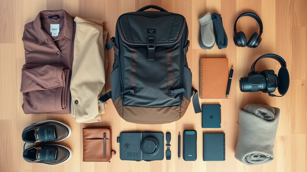 Packing versatile clothing is essential for long-term travel, as it maximizes your options while minimizing bulk. Focus on items that mix and match effortlessly, enabling you to create numerous outfits without excess weight. Here’s a simple breakdown to guide your packing: