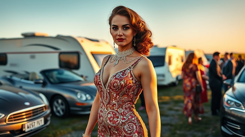 At Irish Traveller weddings, dress becomes a vivid public signal of family standing, cultural pride, and celebration. You’ll see wedding customs shaped by cultural significance, where attire evolution meets social expectations and family influence.