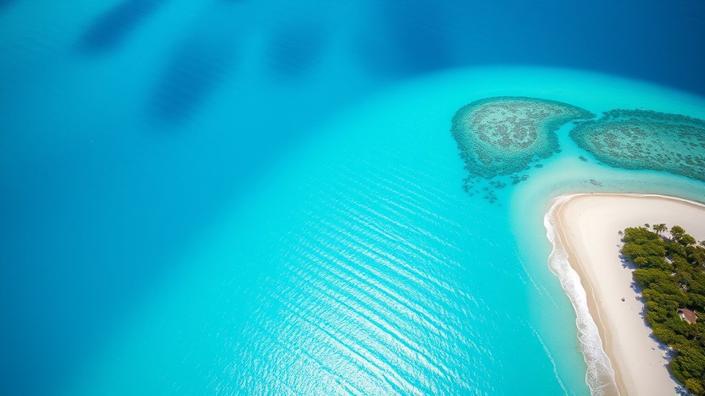 Beneath the radiant surface of the Bahamas lies a unique geographical tapestry that sets it apart from other tropical waters. The island geology here features over 700 islands with mainly shallow depths, enhancing light penetration. This clarity is essential for the enchanting blue hues. Consider these key aspects:
