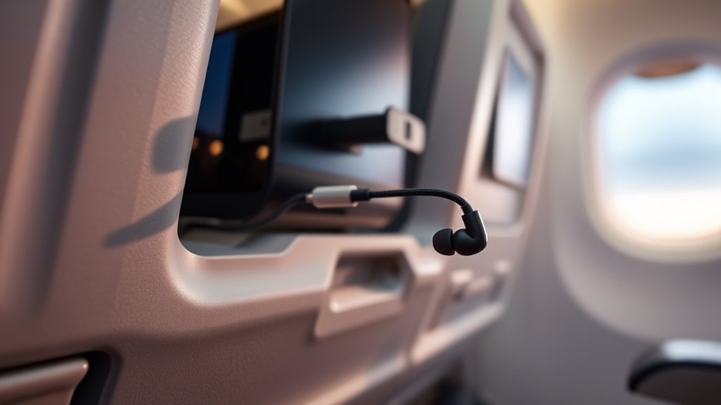 Wired earbuds are your safest bet for airplane entertainment because they usually work with standard 3.5 mm seat jacks and skip Bluetooth hassles. You’ll hear clearer audio, get better comfort than airline headsets, and avoid hygiene concerns from shared gear. Pack them in your carry-on, and bring a twin-prong adapter if you’re flying on an older plane. If you want the best setup, a few simple checks can make your next flight much easier.
